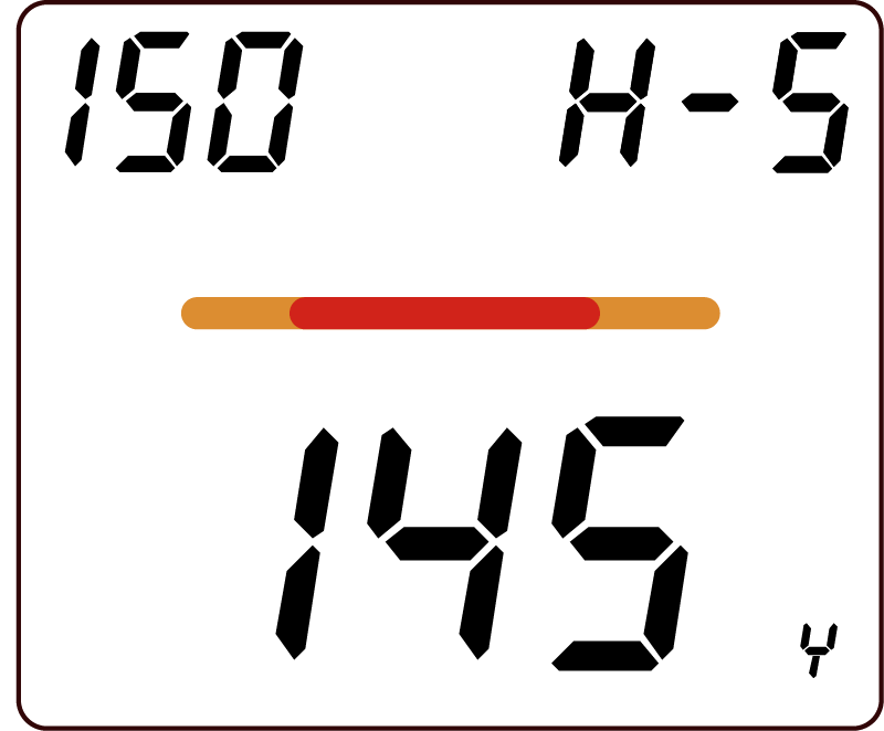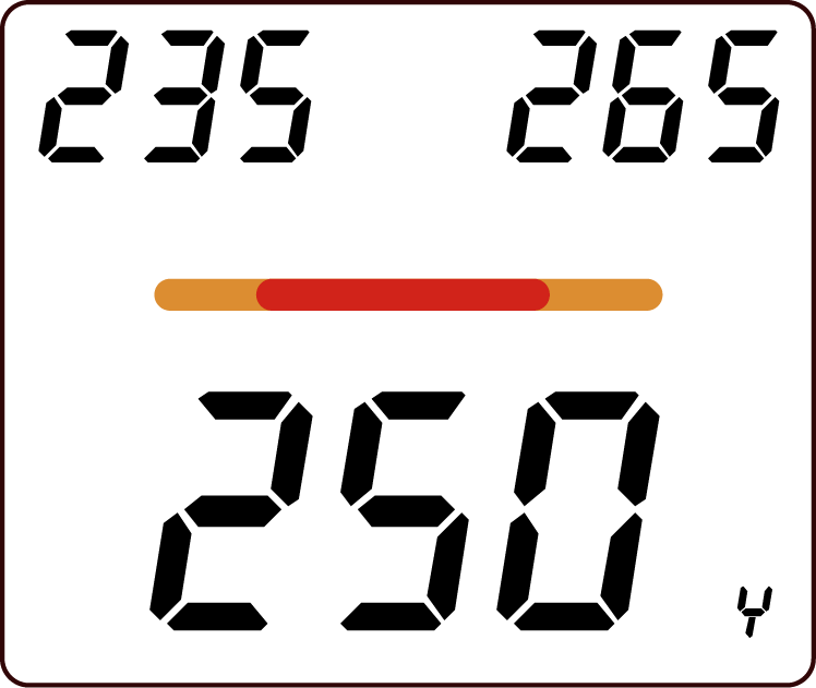 透明液晶部分に距離等を表示します。高低差・パット距離計測時には、パネルに印字された赤とオレンジのラインが一直線になるように照準を合わせます。