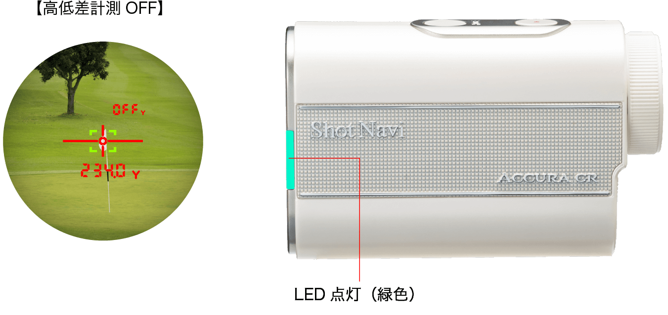 MODEボタンを長押しすることで高低差(目安距離)情報がOFFになり、