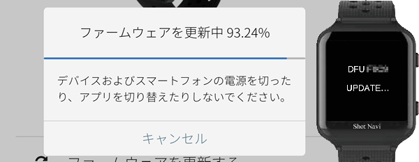 書込みが完了すると、端末でファームウェアの更新処理が開始されます。