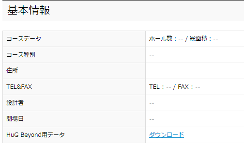 ゴルフ場データは毎日「前日までの更新分」が作成されています。本日更新分のデータへの反映は翌日になりますのであらかじめご了承ください。