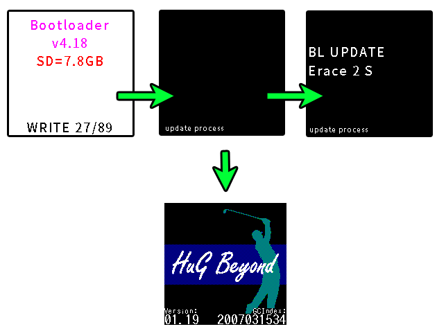 ※ ファームウェア更新後、起動に失敗する場合は、右上、右下ボタンを同時に10秒ほど押し続けてみてください。(再起動処理になります)