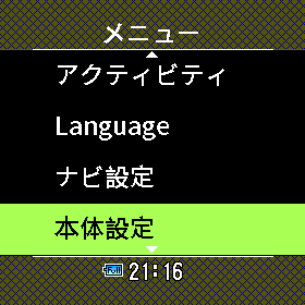 時計画面で左下ボタンを押してメインメニューを出し、「本体設定」から「Bluetooth」を選択します。