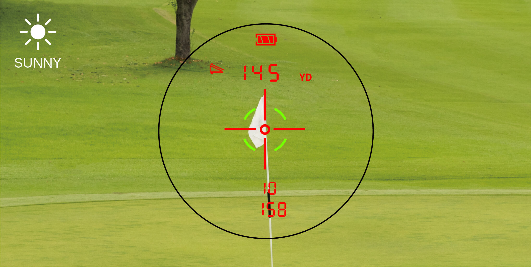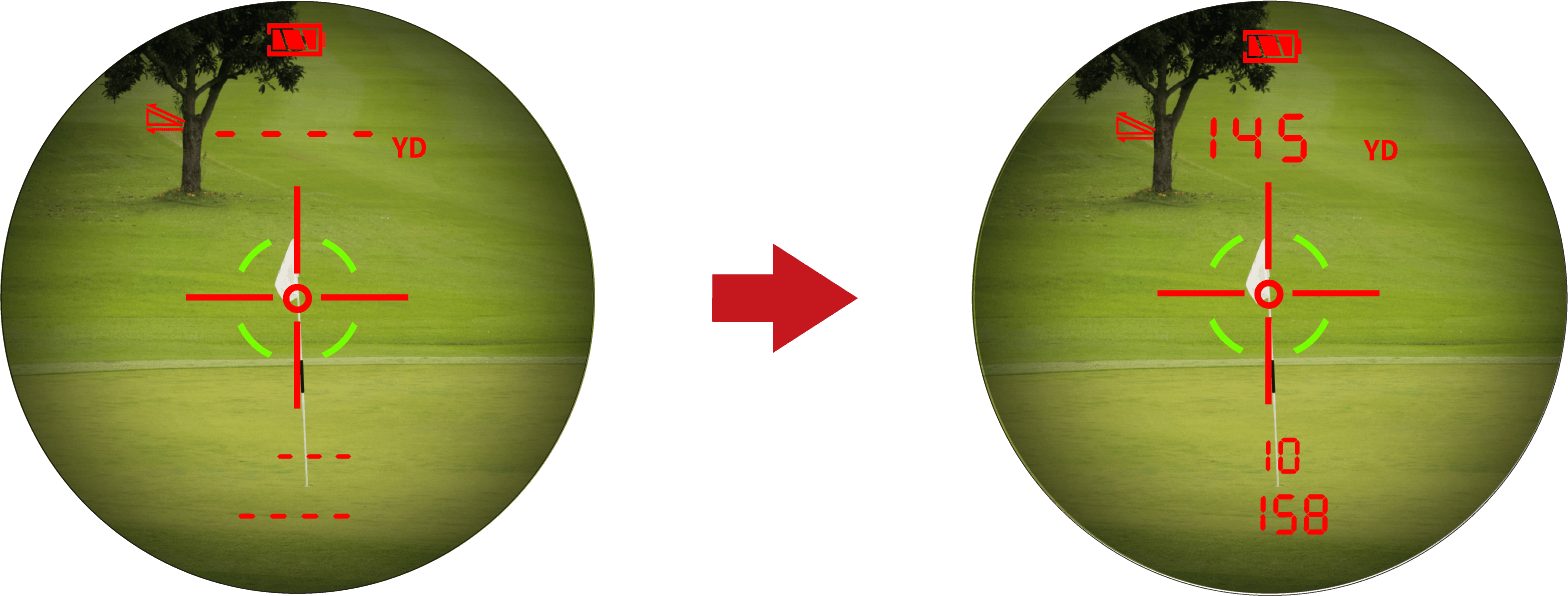照準がピンフラッグに合うと、振動とともに計測が完了します