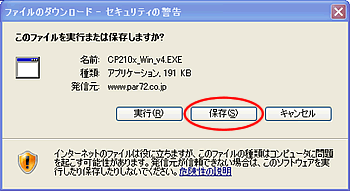 ファイルのダウンロードとセキュリティの警告の画面が表示されます。