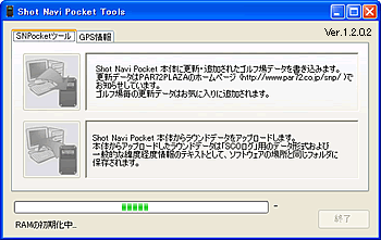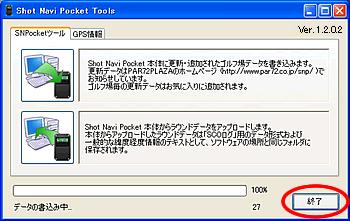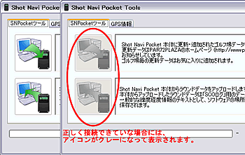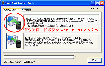 [Windows XPの場合] Shot Navi Pocket Tools を開く スタート → すべてのプログラム → PAR72PLAZA → Shot Navi Pocket → 左上のダウンロードボタン をクリック