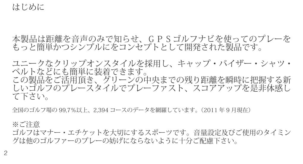 音声タイプ 製品概要 取扱説明書取説 よくあるご質問FAQ Shot Navi Voice Caddie マニュアル Shot Navi Voice Caddie の取扱説明書(PDFファイル)はこちら 更新方法はこちらをご覧ください ShotNaviファミリー現行機種 AIR EX 驚愕の軽さ&タッチパネル Evolve PRO Touch 最大級画面&タッチパネル搭載! Infinity グリーンを攻めろ! Evolve PRO 業界最大サイズディスプレイ! Granz 最小・最軽量カラーハンディ AIR 驚愕の軽さ&タッチパネル超コンパクト Crest フラグシップモデル新色登場 Evolve 屋外での視認性抜群!大人気ベストセラー BeyondLite カラー液晶&リーズナブル大好評販売中 HuG Beyond 屋外での視認性抜群!ベストセラー Neo2hp コンパクトな手持ち型音声案内やデカ文字機能も V2 ワンプッシュで音声案内!簡単・ラクラク操作 Laser Sniper ELUA サブLCD搭載高速計測、広視野ファインダー Voice Laser Red Leo 赤色OLEDで視認性抜群多数のプロが使用中 Laser Sniper nano 世界最小・最軽量級大好評販売中! Voice Laser Leo 音声操作で手ブレを軽減1000Y計測、高速測量 X1 Fit2 1000 手のひらにフィット!コンパクトながら1000Y計測