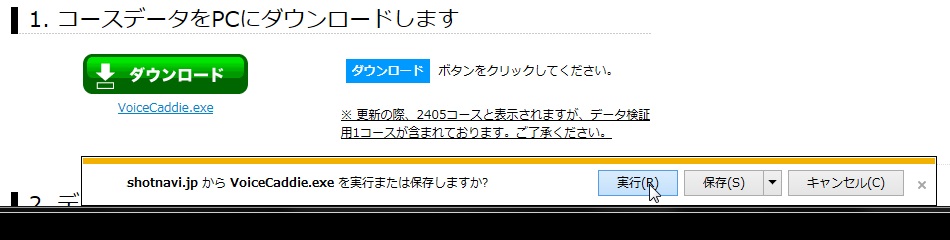 ダウンロード通知画面の 実行 ボタンをクリックしてください。