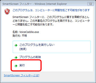 また、Internet Explorer9などでセキュリティの警告やSmartScreenフィルターの警告などが表示される場合