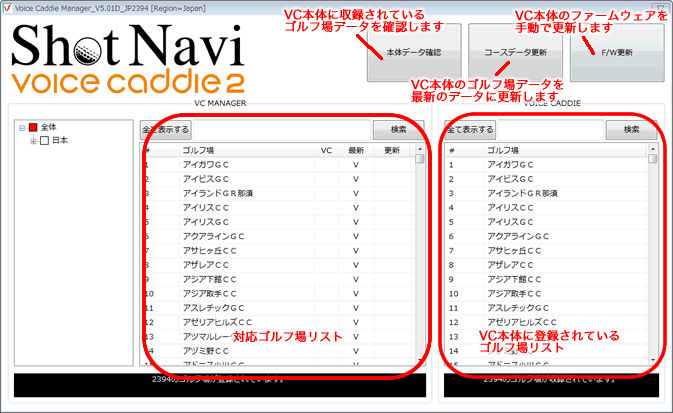 | 対象製品 | Shot Navi Voice Caddie / Shot Navi Voice Caddie2 |