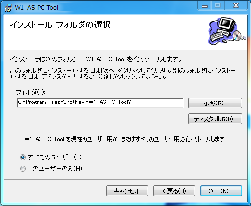 続いて Shot Navi W1-GL/AS PC Toolのインストールが開始されます。画面に従い、インストールを完了してください。