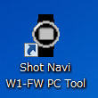 デスクトップにある「Shot Navi W1-FW PC Tool(腕時計のアイコン)」か、スタートメニューのプログラム→ShotNavi→W1-FW から、ツールを起動できます。