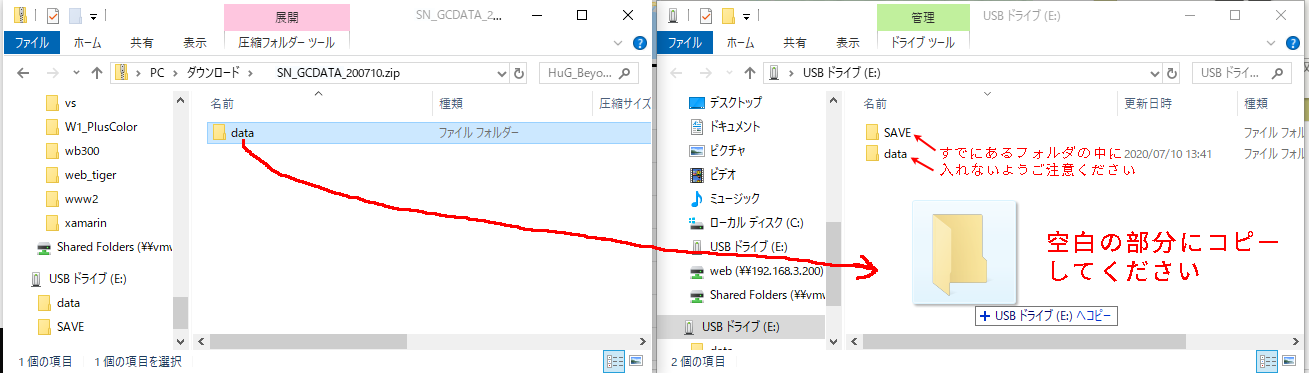 - 通常、dataフォルダを上書きする形になります。