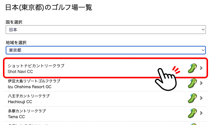 - 左記の「世界対応のゴルフ場リスト」のページから、該当のゴルフ場のダウンロードページを開いてください。