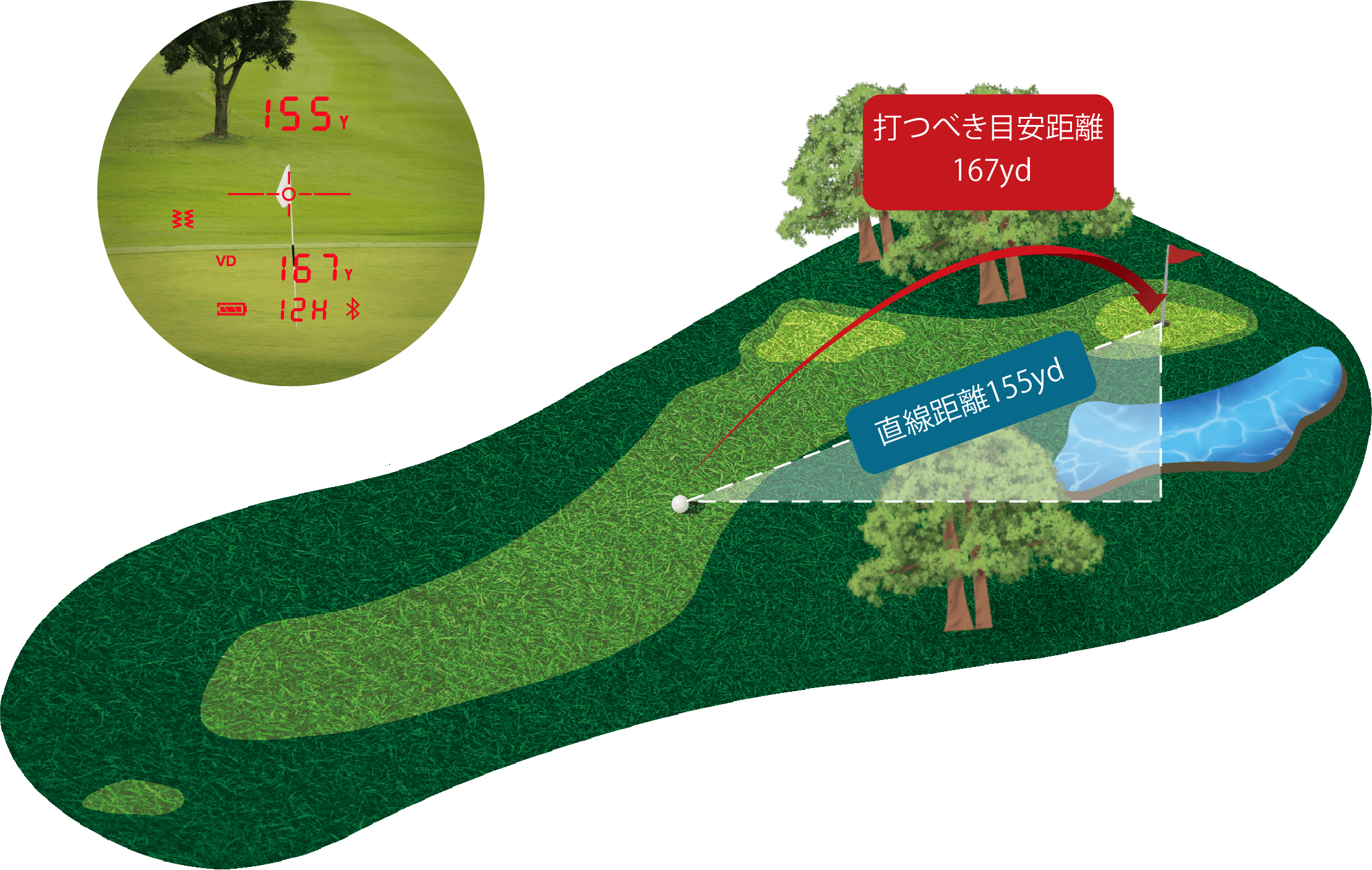 ボールからピンなど目標物までの距離を計測できます