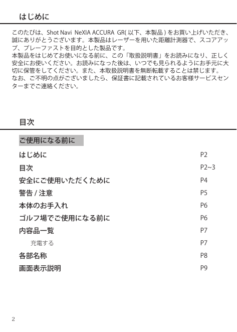 [Shot Navi Nexia] Accura GR 取扱説明書(PDFファイル)はこちら