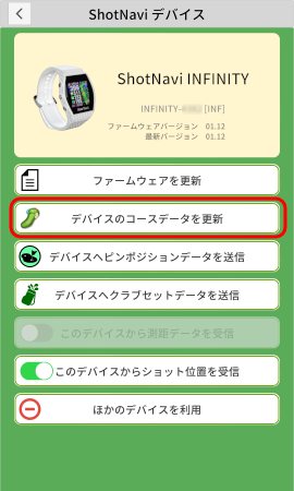 ShotNavi端末側のBluetoothをオンにした状態で、ホームメニューから「ShotNaviデバイス」をタッチします。