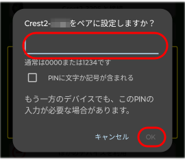スマートフォン側で、端末に表示されたPINコードを入力してください。