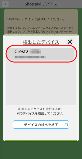 端末が見つかると、端末名が表示されます。端末名をタッチしてください