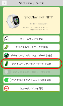 端末でクラブセットの値が送信され、ナビ時の推奨番手に反映されます。