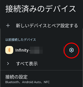 ※以降画像はInfinityと接続時のものです。端末名が違うだけで操作は同じです。