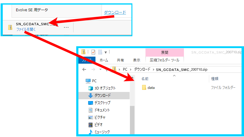 (SN_GCDATA_SMC_[日付].zip というファイル名になります)