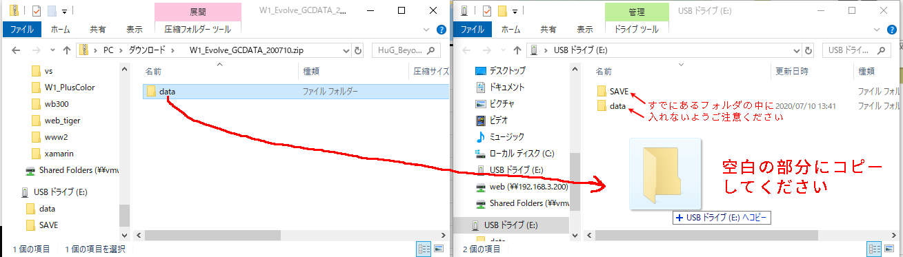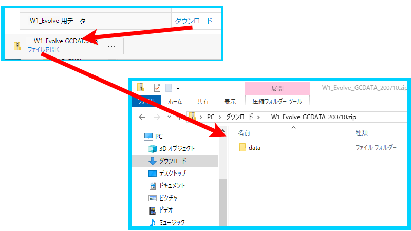 (W1_Evolve_GCDATA_[日付].zip というファイル名になります)