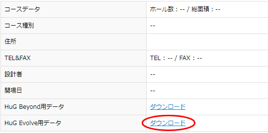基本情報の「W1 Evolve/Crest用データ」のところの「ダウンロード」を押してください。 ゴルフ場データが圧縮されているZIPファイルをダウンロードします。