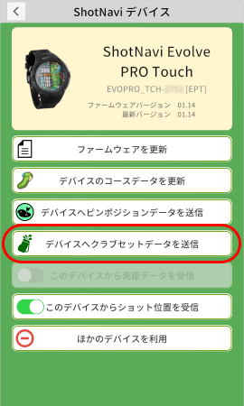 Shot Navi Evolve PRO Touch アプリ連携(Bluetooth)機能