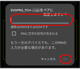 スマートフォン側で、端末に表示されたPINコードを入力してください。