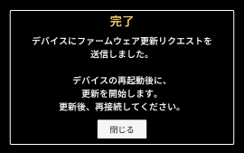 更新可能なファームウェアがあるときは、この時点で自動的にファームウェア更新画面になります。