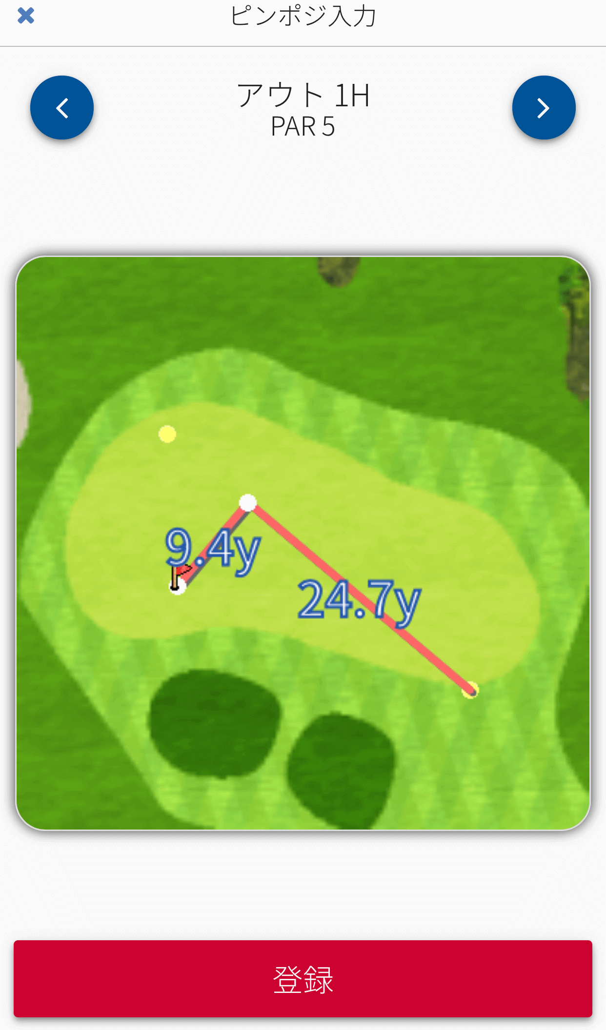 ゴルフ場情報の画面に戻るとピンポジションが追加されているので選択します