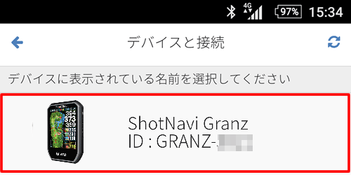 デバイス検索を行っています。見つからなかった場合はタップして再検索してくださいの部分にタッチして再検索をお試しください