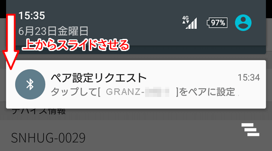 本体の画面にペアリング完了と表示されればペア設定完了です!