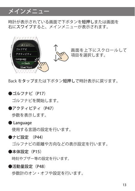 Shot Navi INFINITY Touch マニュアル