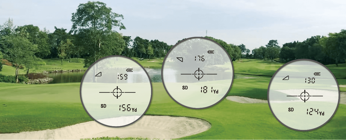 バンカーやクリークなど、連続して様々なターゲットまでの距離を計測できます。(10秒間)