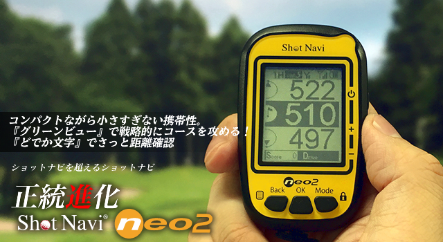 本製品には多彩なナビ画面のビューがあり、各ビューの切り替えは「Mode」ボタンを押すだけ!。シンプルビューではグリーンのフロント、センター、バックを同時に表示。ハザードビューではグリーンに加えてコース内の各ハザードまでの距離をアイコンをセットで表示。グリーンビューでは現在地点からみたグリーンの形状とその縦横幅を表示します。端末を横にすれば大きな文字でグリーンセンターまでの距離を「どでか」く表示するどでか文字ビュー、スコアビューも搭載