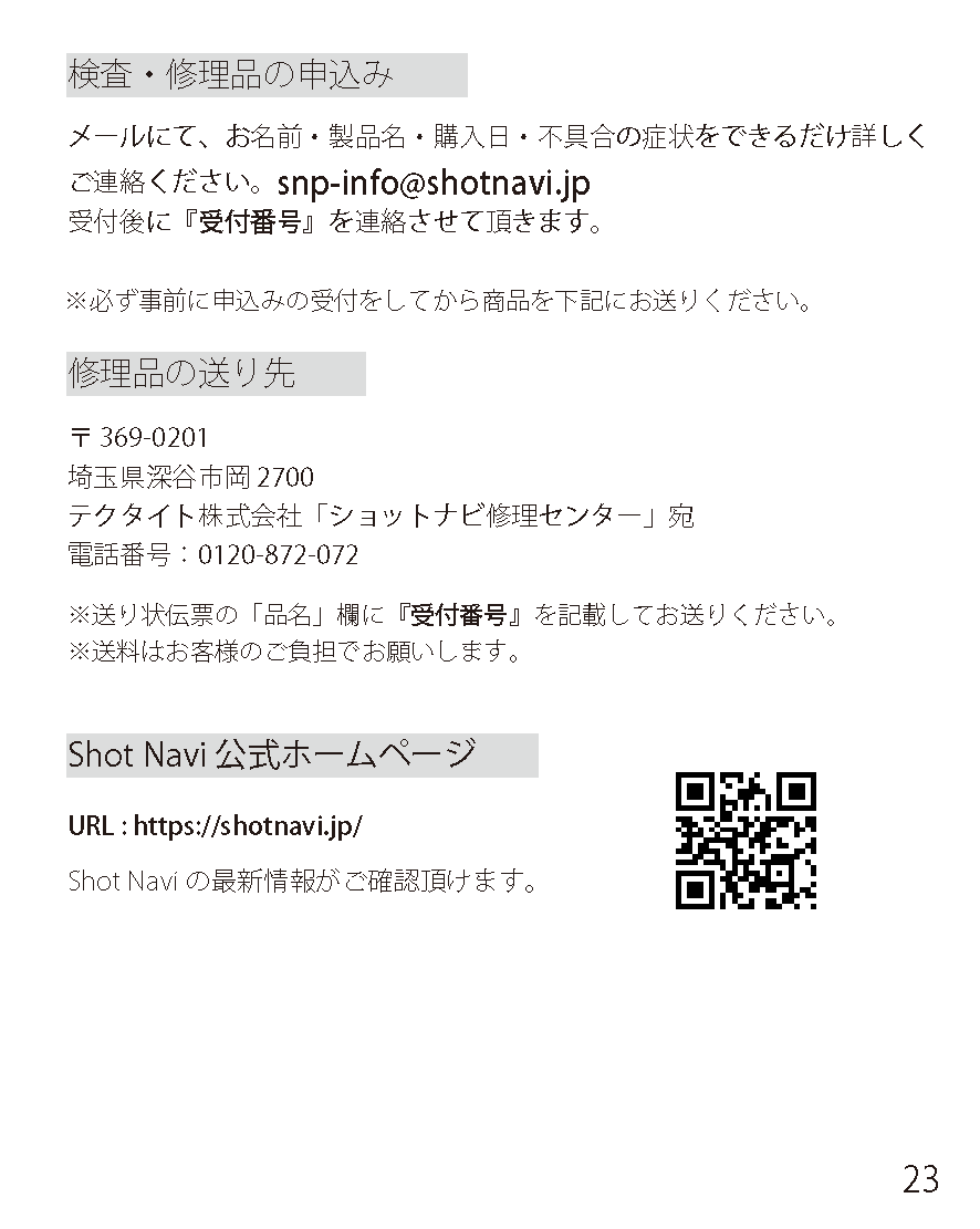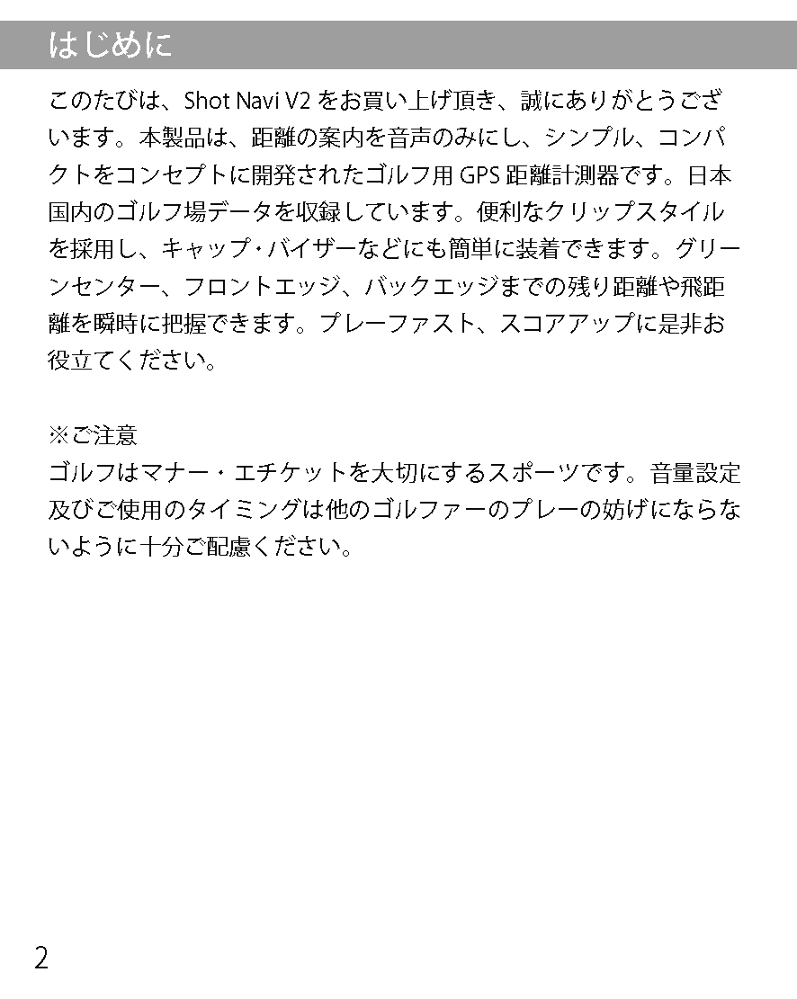 New音声タイプ 製品概要 データ更新 取扱説明書取説 よくあるご質問FAQ Shot Navi V2 マニュアル Shot Navi V2 取扱説明書(PDFファイル)はこちら ShotNaviファミリー現行機種 AIR EX 驚愕の軽さ&タッチパネル Evolve PRO Touch 最大級画面&タッチパネル搭載! Infinity グリーンを攻めろ! Evolve PRO 業界最大サイズディスプレイ! Granz 最小・最軽量カラーハンディ AIR 驚愕の軽さ&タッチパネル超コンパクト Crest フラグシップモデル新色登場 Evolve 屋外での視認性抜群!大人気ベストセラー BeyondLite カラー液晶&リーズナブル大好評販売中 HuG Beyond 屋外での視認性抜群!ベストセラー Neo2hp コンパクトな手持ち型音声案内やデカ文字機能も V2 ワンプッシュで音声案内!簡単・ラクラク操作 Laser Sniper ELUA サブLCD搭載高速計測、広視野ファインダー Voice Laser Red Leo 赤色OLEDで視認性抜群多数のプロが使用中 Laser Sniper nano 世界最小・最軽量級大好評販売中! Voice Laser Leo 音声操作で手ブレを軽減1000Y計測、高速測量 X1 Fit2 1000 手のひらにフィット!コンパクトながら1000Y計測