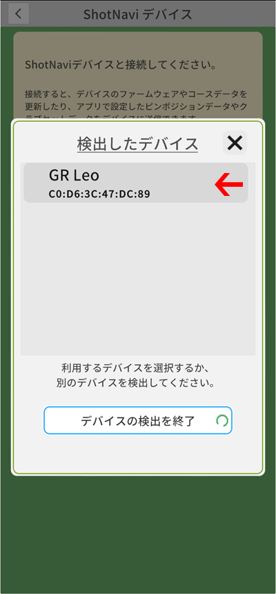 アプリを起動し,「ShotNaviデバイス」を選択します