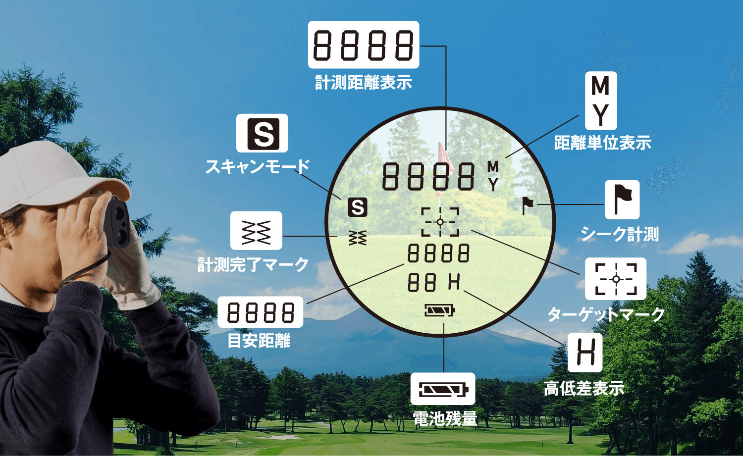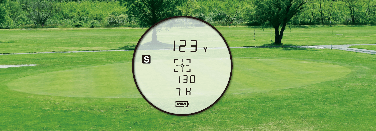 シンプルにボタンの単押し、または音声で、 ターゲットマークの中心までの距離を計測します。