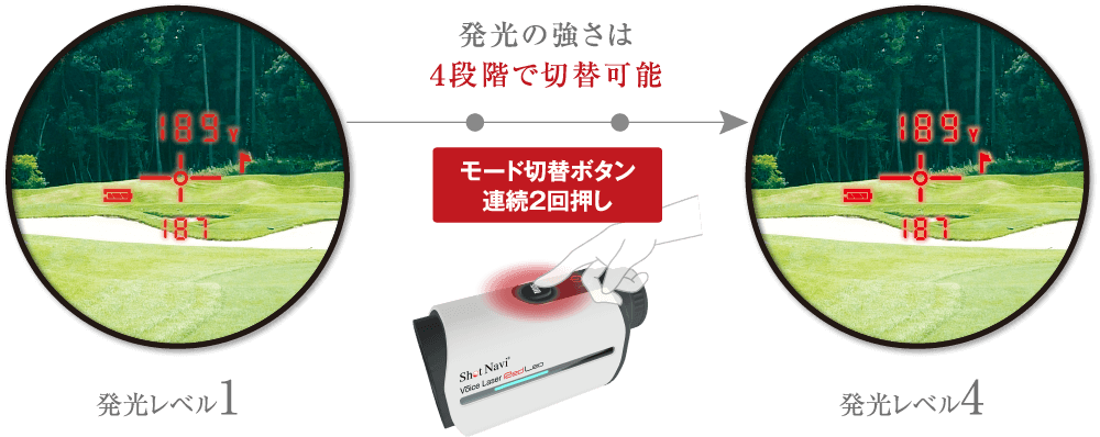 レーザー距離計はファインダーを覗いて距離を測る非常にシ ンプルな製品です。しかし何百ヤードも先の目標物を覗きながらボタン操作が必要なため、操作時の手振れが長年の課題でした。手振れ補正機能を 搭載することにより操作性を改善する方法もありますが、そもそもボタンを押さなければいいのではないか?という発想に基づきこのモデルの開発 はスタートしました。そのような中、我々が着目したのがスマートフォンをはじめとした電子端末で活用されている「音声認識機能」です。また、 ゴルフ場という緑や木々の多い環境での視認性向上のため「赤色OLED」を採用しました。